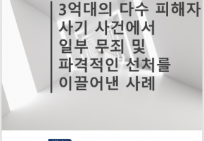다수 피해자 3억대 사기 사건, 수사초기 적극 대응으로 일부 무죄 및 기소금액 대비 파격적인 선처를 이끌어낸…